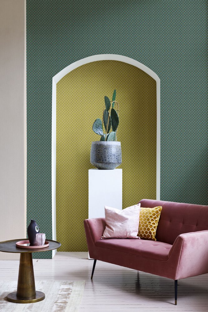 Green geometric pattern wallpaper, 220960, Preloved, BN Walls