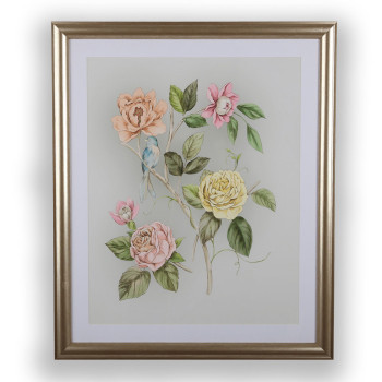 This painting will bring a calm and romantic atmosphere to the interior. Printed on canvas, metallic frame. Motif of colourful roses in soft pastel tones.