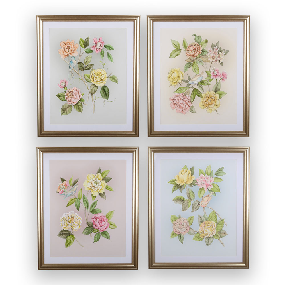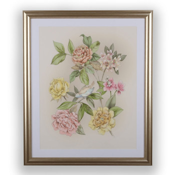 This painting will bring a calm and romantic atmosphere to the interior. Printed on canvas, metallic frame. Motif of colourful roses in soft pastel tones.
