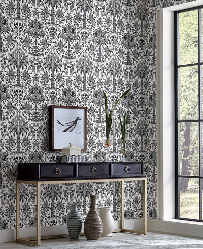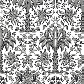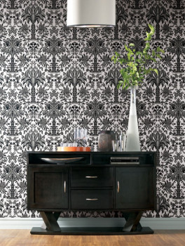 Grey-black paper wallpaper -ornaments, palm trees DM5014, Damask, York