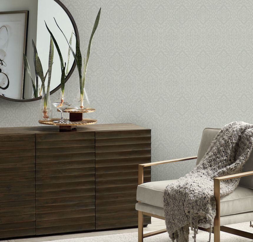Grey-white pre-pasted baroque wallpaper DM5036, Damask, York
