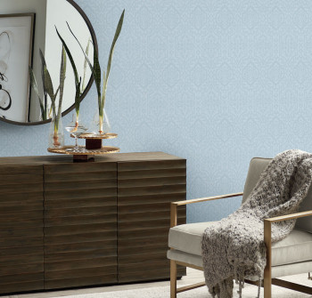 Light blue pre-pasted wallpaper, ornaments DM5033, Damask, York