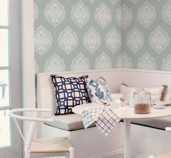 Green pre-pasted baroque wallpaper DM4982, Damask, York