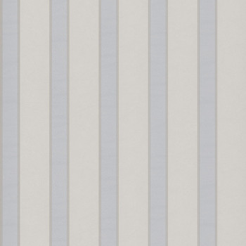 Non-woven wallpaper with a vinyl surface in beige and blue shades with a stripe pattern.