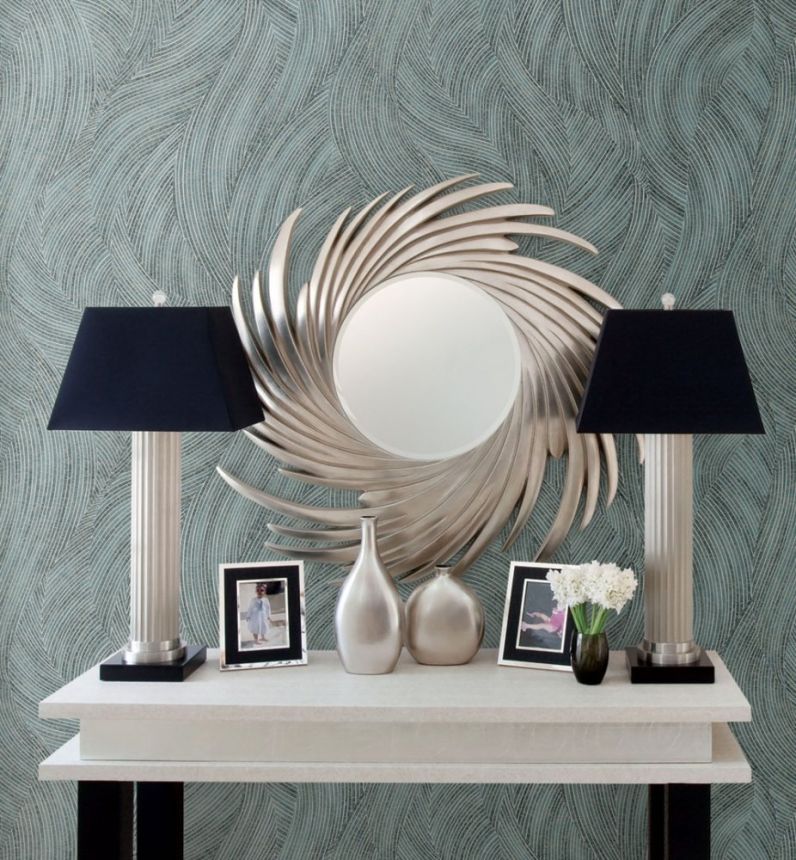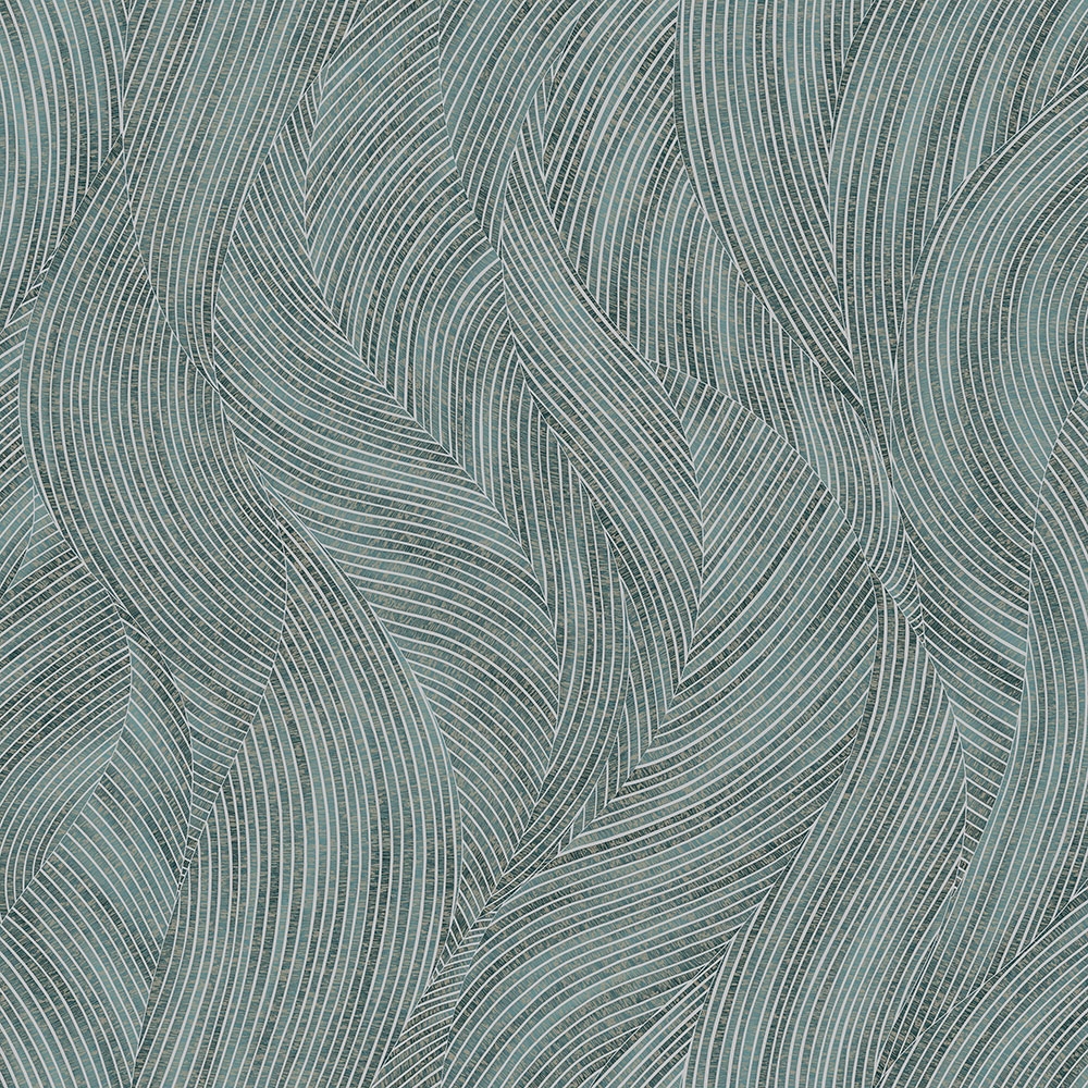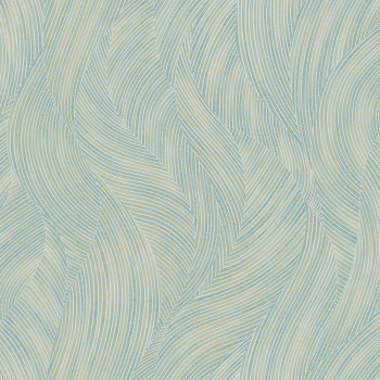Non-woven wallpaper with striped texture in shades of metallic turquoise and light gold.