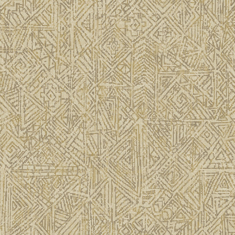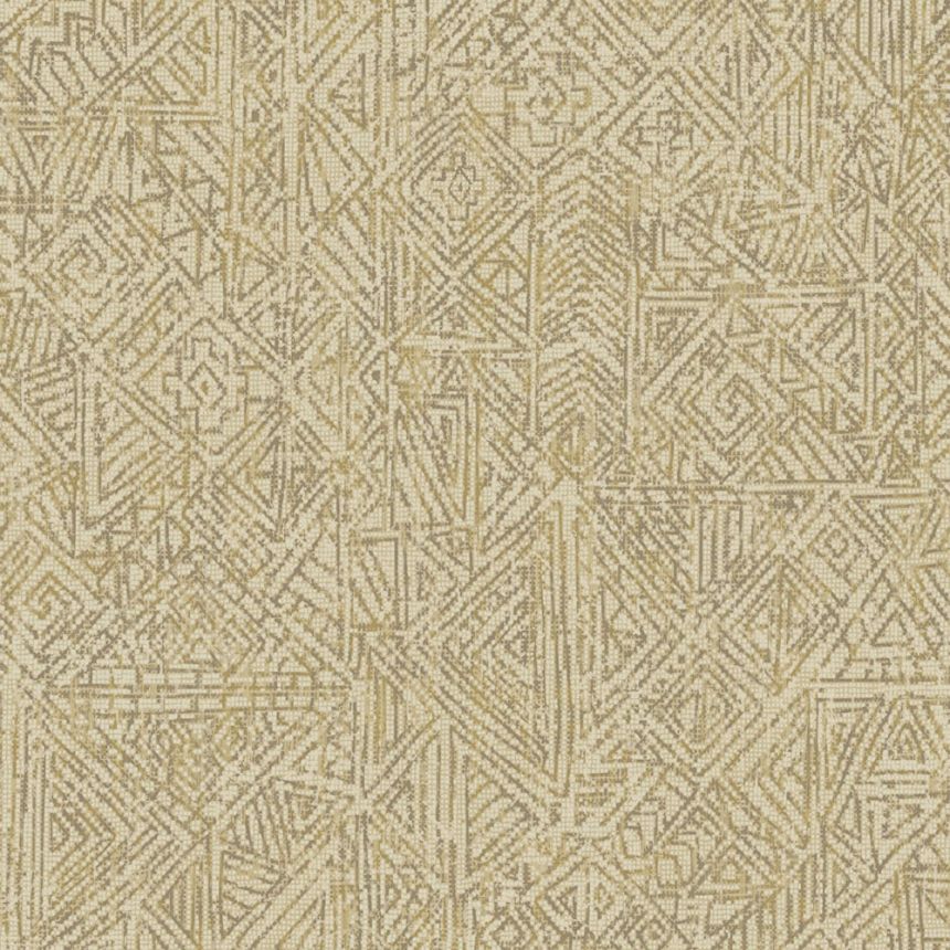 Finely embossed texture, design of ethnic drawings in brown-gold shades, cream-beige background.