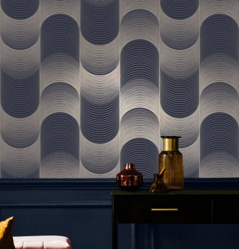 Non-woven wallpaper with silver waves on a dark blue background will bring luxury and nobility to the interior.
