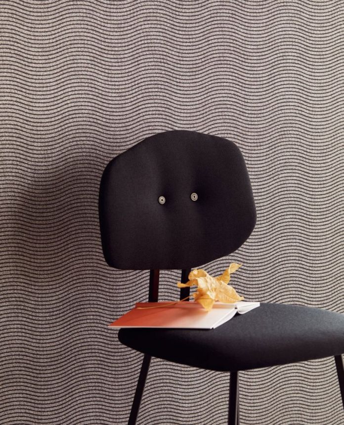 Metallic reflections bring luxury and style into your interior. Elegant, finely embossed gray-silver semi-gloss wavy pattern on a black background.