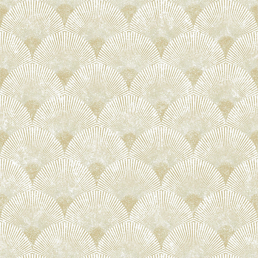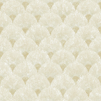 Luxury non-woven wallpaper in beige with golden metallic ornaments.