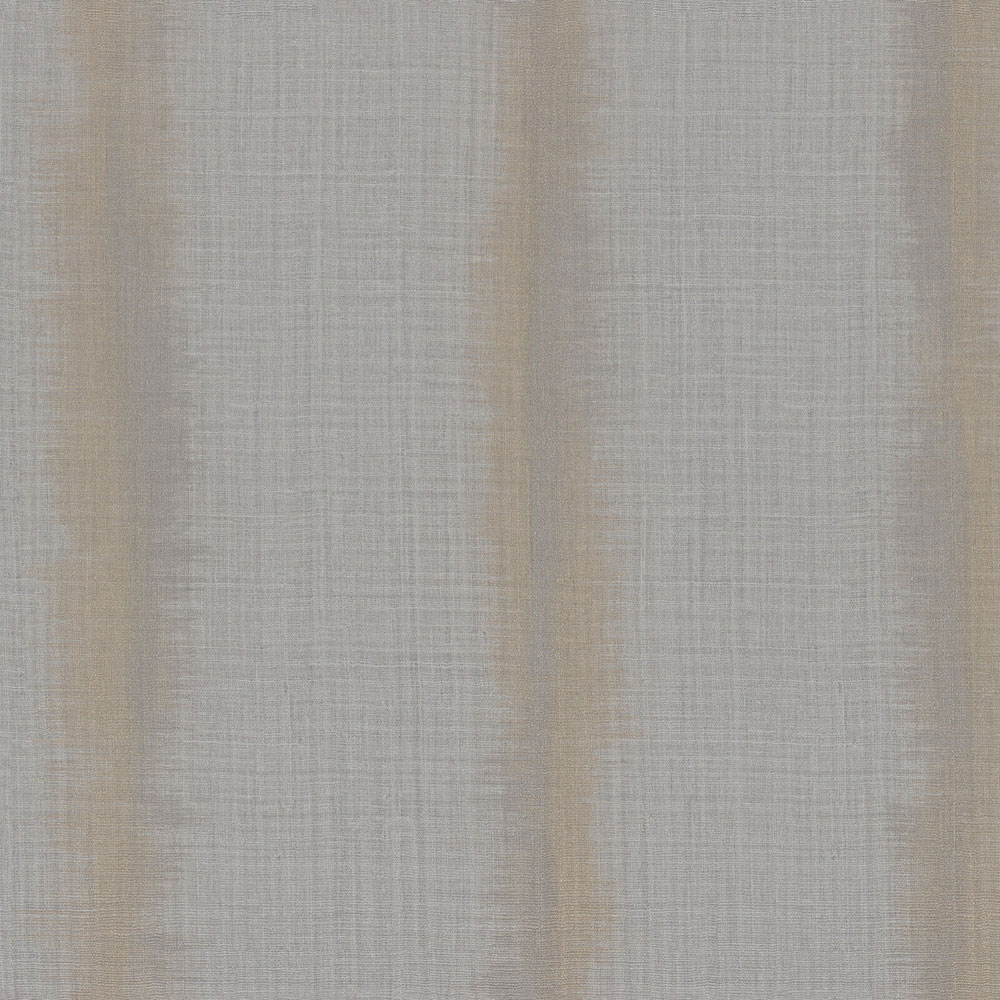 Luxury non-woven wallpaper with a vinyl surface with a distinctive coarse structure in gray with gold stripes and metallic reflections.