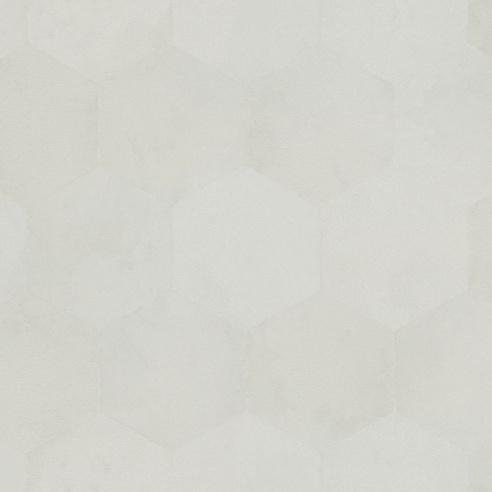 Luxury non-woven wallpaper with a vinyl surface in a cream color with a coarse structure and a geometric pattern of hexagons.