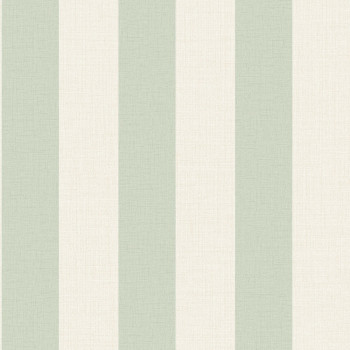 Non-woven striped wallpaper, imitation striped fabric in shades of green and beige.