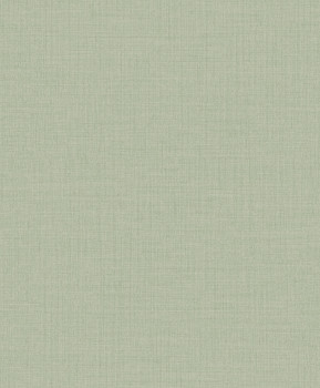 Non-woven wallpaper with a fabric look and texture in light green tones.
