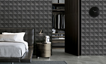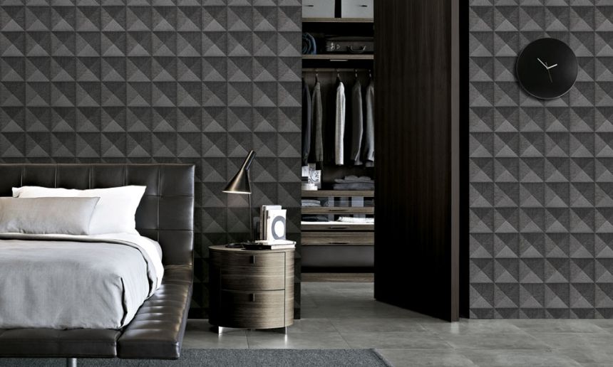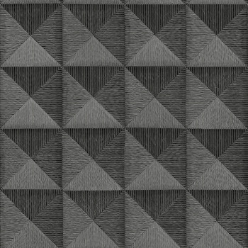 Non-woven black-anthracite-silver wallpaper with a geometric pattern.