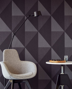 Big geometric pattern in shades of black and dark gray, with a subtle semi-gloss.