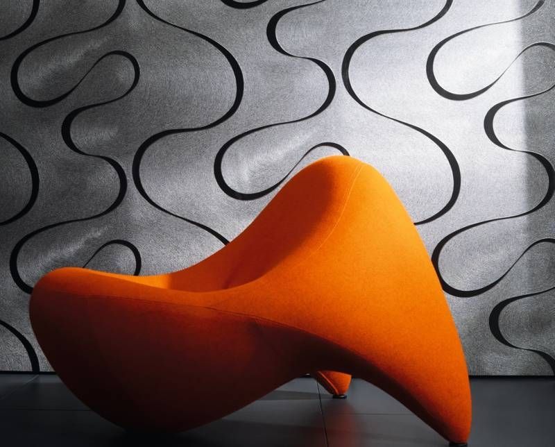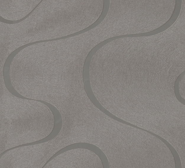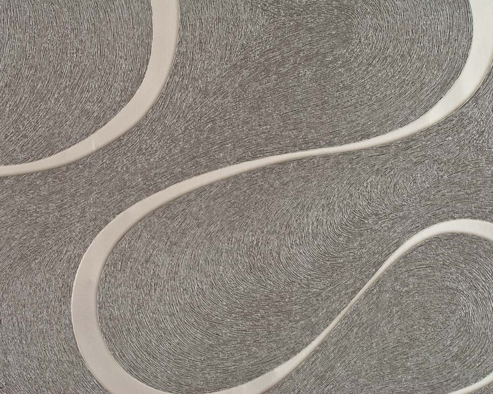 Spectacular curves on a grey-silver non-woven wallpaper.