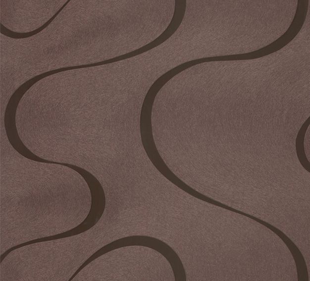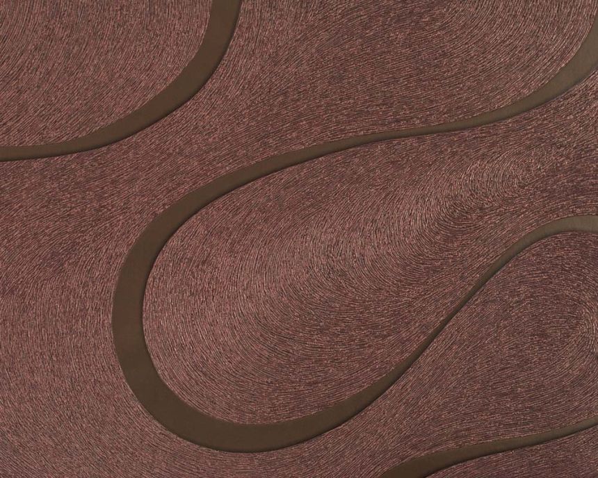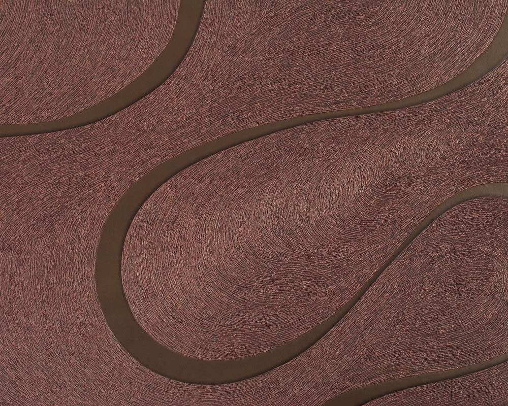 Spectacular brown curves on a bronze non-woven wallpaper.