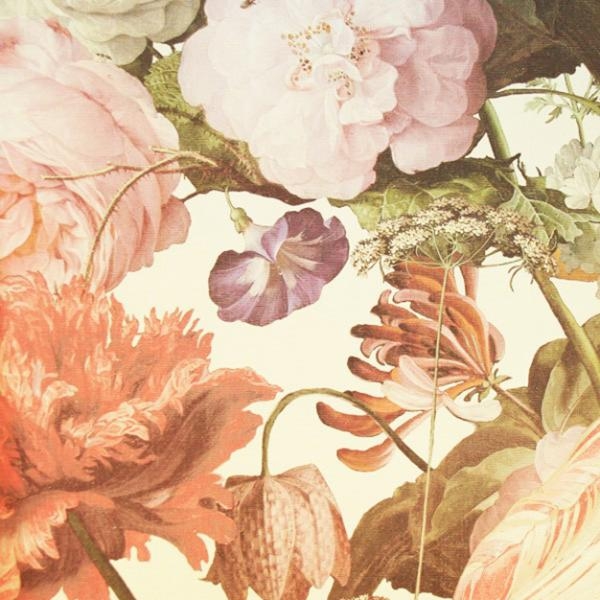 Like the old masters canvases. Floral pattern in pastel colors on a creamy white background.