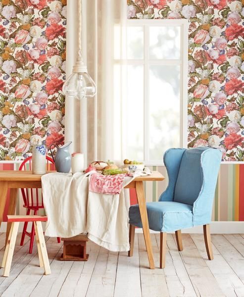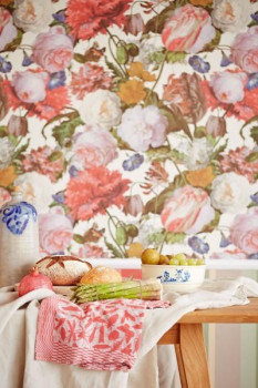 Like the canvases of old masters. Colorful floral pattern on a non-woven wallpaper.
