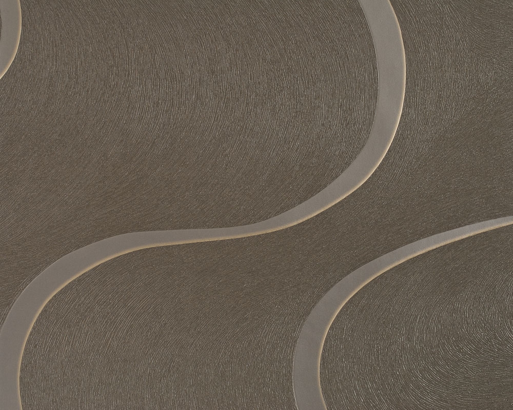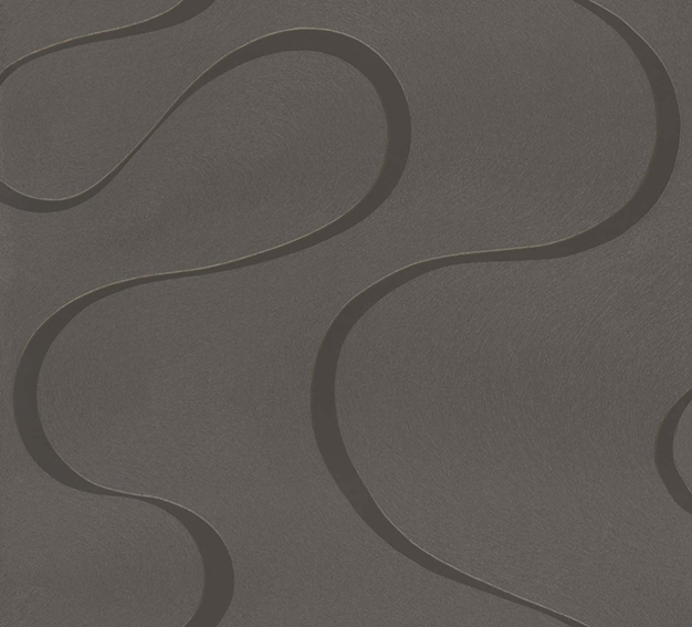 Spectacular brown curves on a dark gray non-woven wallpaper.