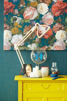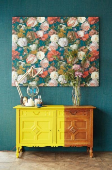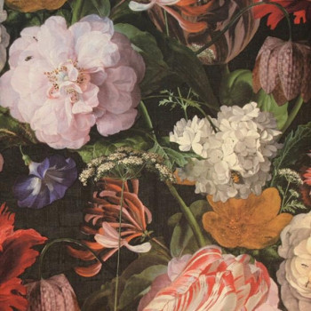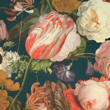 Like the canvases of old masters. Colorful floral pattern on a dark green background.