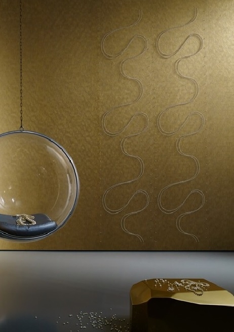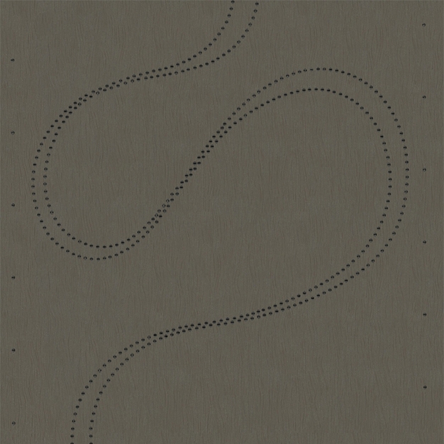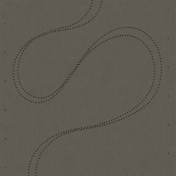 Curves of decorative pearls on a dark gray non-woven wallpaper.
